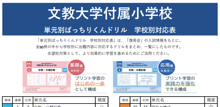 【文教大学付属小学校向け】厳選9科目のお得なパッケージはコチラ
